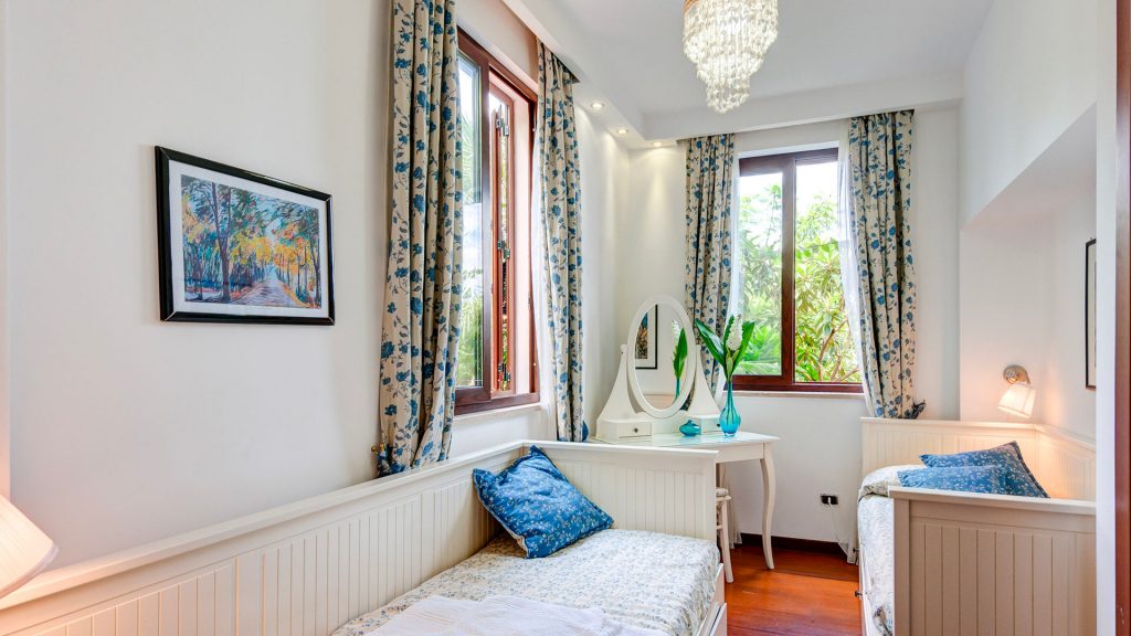 На віллі 9 спалень - 7 більших і 2 менших, кожна з яких оформлена по-своєму. Деякі спальні обставлені вишуканими відреставрованими предметами зі знаменитого палацу Мамунія, що надає інтер'єру вілли нотку 1930-х років.