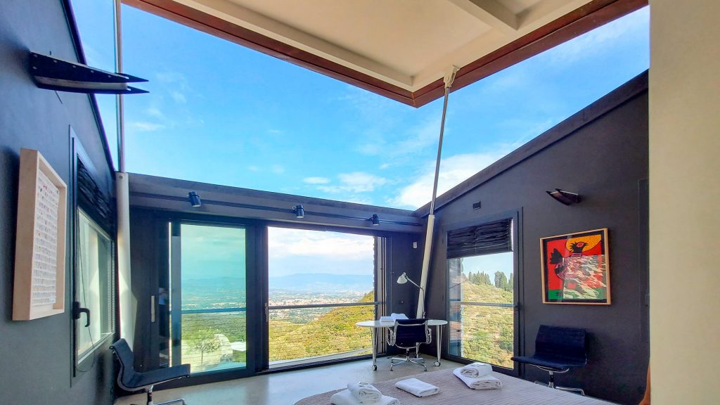 Ця незвичайна нерухомість розташована на перших пагорбах довкола Лукки. Це місце мрії є лабораторією, місцем експериментів та медитації для власників, Мішеля Букійона та Донії Маауї, архітекторів, художників та дизайнерів.
